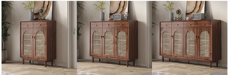 Tủ giày gỗ óc chó cánh mây có nhiều mẫu mã và kiểu dáng khác nhau, phù hợp với nhiều phong cách trang trí nội thất. Bạn có thể dễ dàng lựa chọn một chiếc tủ giày phù hợp với không gian sống của mình, từ những thiết kế cổ điển đến hiện đại.