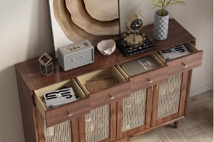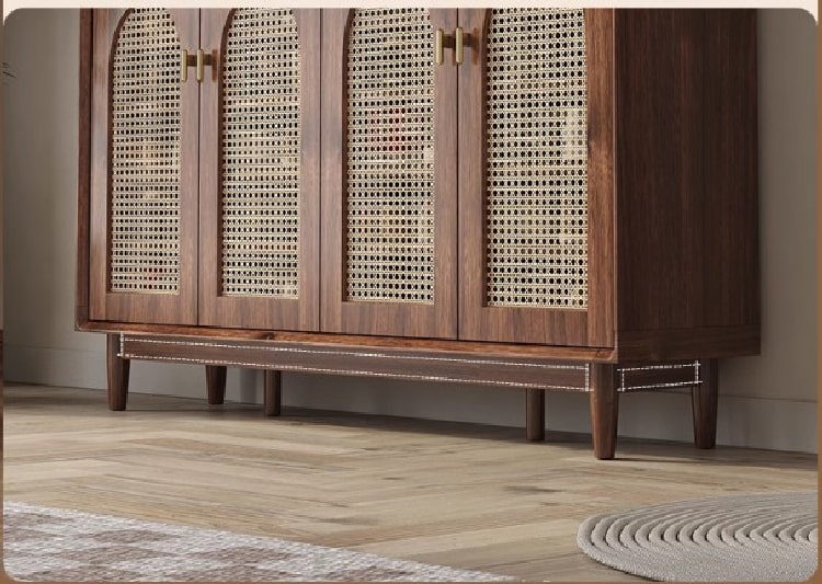 Không chỉ đẹp, tủ giày gỗ óc chó cánh mây còn đáp ứng tốt nhu cầu bảo quản giày dép của gia đình. Với nhiều ngăn chứa và diện tích rộng rãi, người dùng có thể thoải mái sắp xếp giày dép theo từng loại, từ giày thể thao, giày cao gót cho đến sandal.