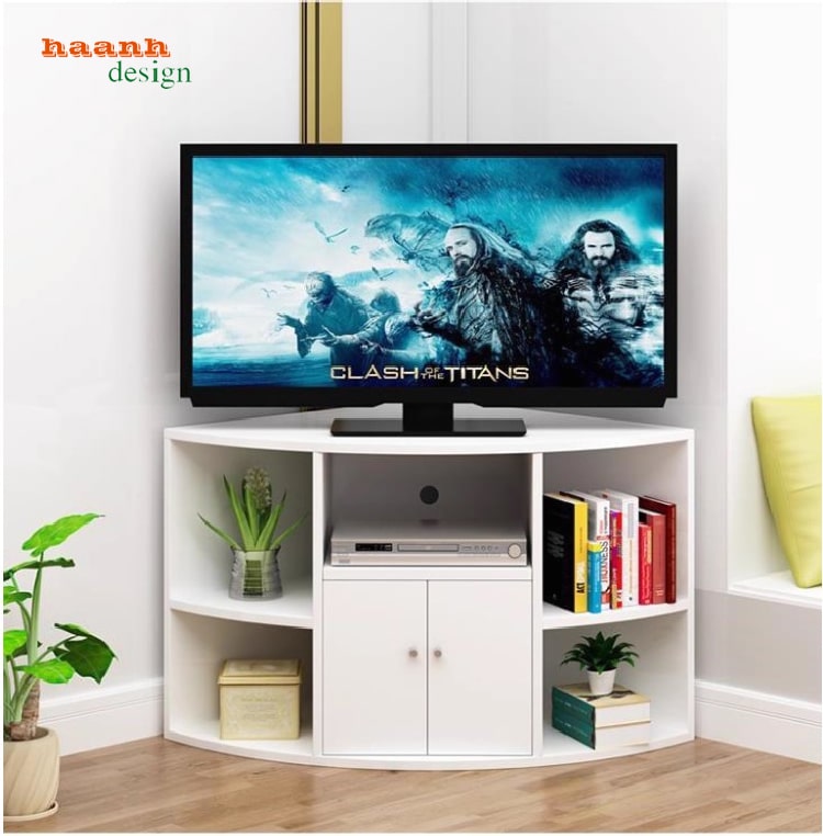 Thiết kế góc giúp kệ tivi tối ưu diện tích không gian.