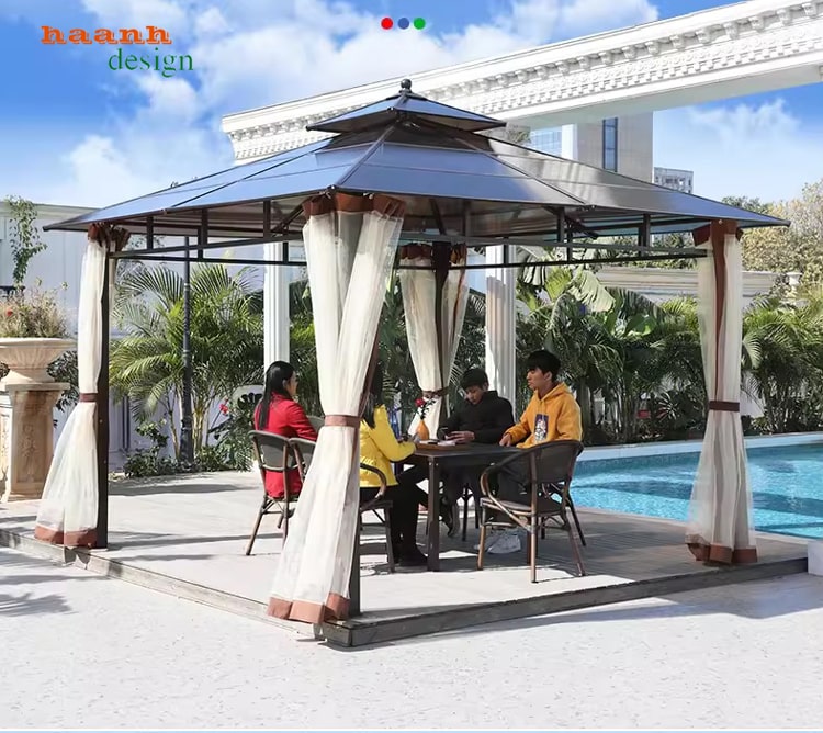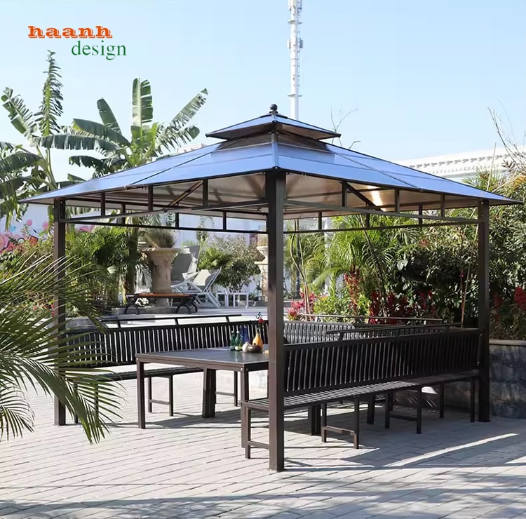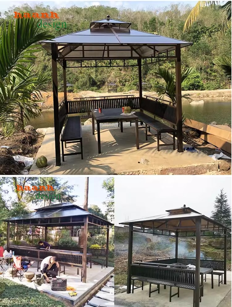 Sử dụng: Sau khi hoàn thành, bạn có thể sử dụng nhà chòi sắt sơn tĩnh điện để tổ chức tiệc nướng BBQ, làm nơi thư giãn, hoặc bảo vệ các cây cảnh và đồ trang trí ngoại trời. Nhà chòi còn là nơi thư giãn tiệc vui gia đình trong những ngày nghỉ ngơi xum vầy