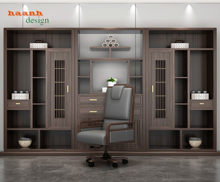 - Kệ sách: Thêm vào phòng lãnh đạo một số kệ sách bằng gỗ để tạo điểm nhấn và lưu trữ sách và tư liệu chuyên ngành. Kệ sách có thể được thiết kế với các ngăn mở hoặc kính cường lực để tạo ra một không gian trưng bày lịch sự.