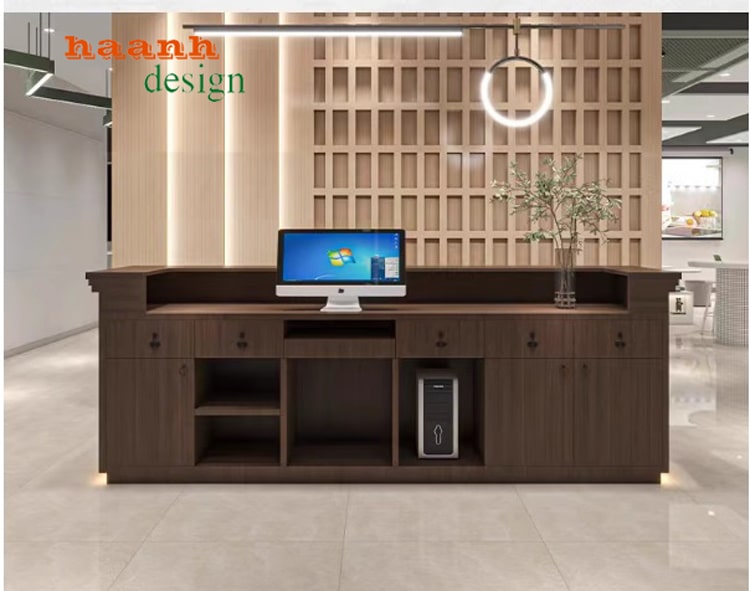Chất liệu chính được sử dụng để làm quầy lễ tân đẹp hiện đại là gỗ công nghiệp hoặc kim loại. Với tính năng chịu lực và độ bền cao, hai loại chất liệu này đã trở thành lựa chọn hàng đầu của nhiều doanh nghiệp trong việc thiết kế quầy lễ tân đẹp hiện đại.