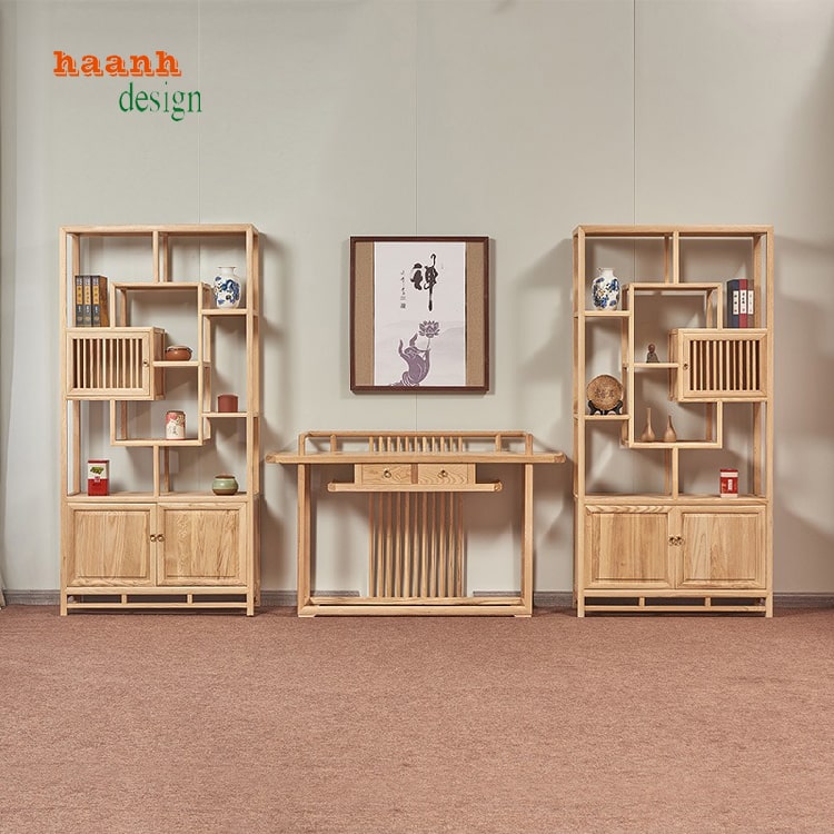 Thiết kế tối giản và hình học: Kệ gỗ với các đường nét thanh mảnh, hình khối đơn giản nhưng tinh tế tiếp tục được ưa chuộng, phù hợp với phong cách sống tối giản và hiện đại.