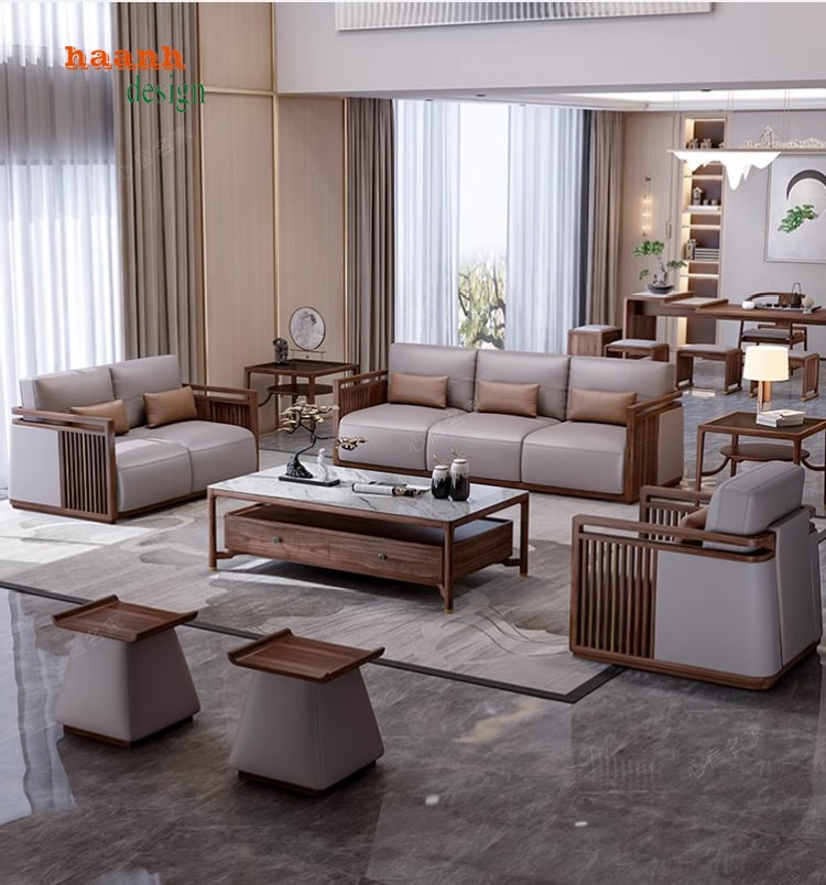 Xu hướng kết hợp gỗ với các chất liệu khác như vải, da hoặc kim loại cũng ngày càng phổ biến. Sự kết hợp này không chỉ mang lại sự mới lạ mà còn giúp sofa trở nên bắt mắt hơn.