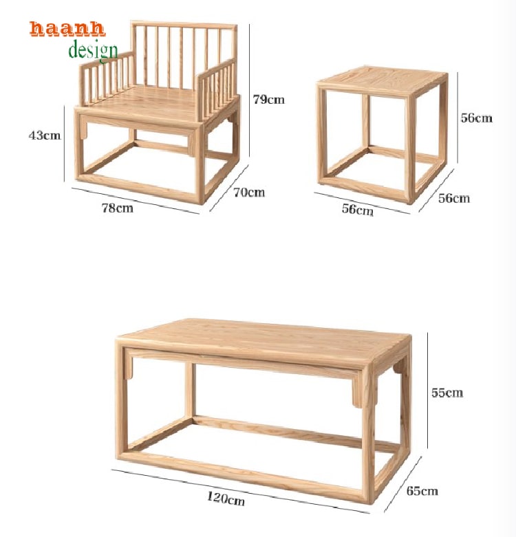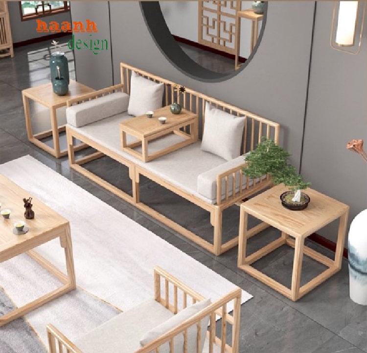 Thiết kế của bộ bàn ghế sofa gỗ sồi theo tinh thần tối giản, tinh tế, loại bỏ các chi tiết rườm rà nhưng vẫn giữ được thần thái sang trọng. Các chi tiết như tay vịn, chân ghế, lưng tựa được xử lý tinh xảo, uốn cong mềm mại theo đúng phong cách nội thất Á Đông.