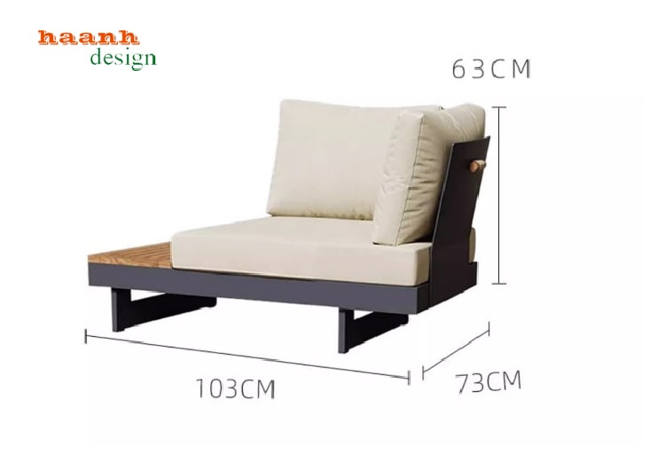 Sofa ngoài trời gỗ Teak kết hợp chân sắt sơn tĩnh điện và đệm vải kháng nước Hàn Quốc là lựa chọn lý tưởng cho sân vườn, ban công và không gian ngoài trời. Với thiết kế hiện đại, sơn phủ 5 lớp chống tia UV Inchem nhập khẩu Mỹ, sản phẩm vừa bền đẹp, vừa giữ nguyên màu gỗ tự nhiên, mang đến sự tiện nghi và đẳng cấp cho ngôi nhà.