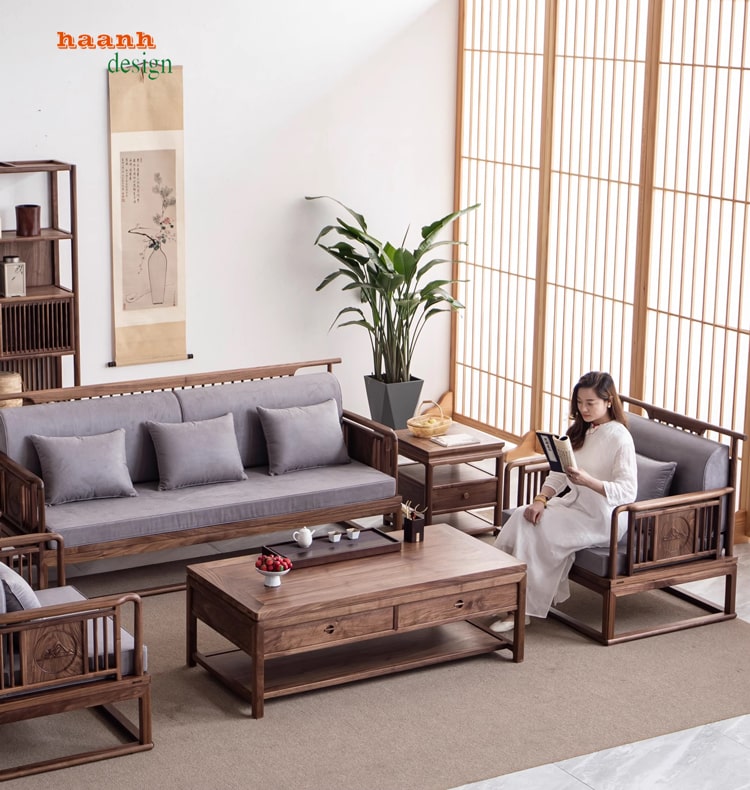 Sofa phòng khách gỗ óc chó tự nhiên phong cách Á Đông là một lựa chọn thiết kế nội thất độc đáo và tinh tế. Gỗ óc chó là loại gỗ có màu sắc đẹp và vân gỗ độc đáo, thường được ưa chuộng để làm đồ nội thất cao cấp. Phong cách Á Đông thường mang đến sự thanh lịch, tối giản và gần gũi với thiên nhiên, kết hợp giữa sự cổ điển và tinh tế.
