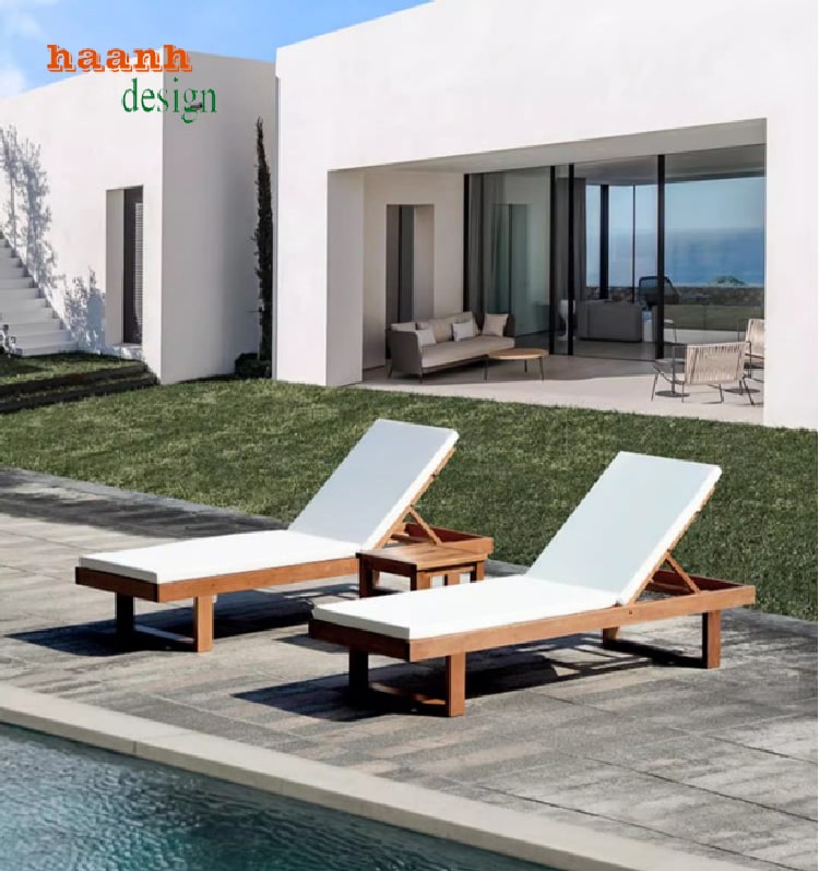 Để tăng thêm tính thẩm mỹ cho không gian, bạn có thể kết hợp giường tắm nắng gỗ teak với các phụ kiện như gối tựa, ô che nắng hay bàn trà nhỏ. Những món đồ này sẽ tạo nên một khu vực nghỉ ngơi hoàn hảo, đưa bạn trở thành trung tâm của sự chú ý trong mỗi kỳ nghỉ.