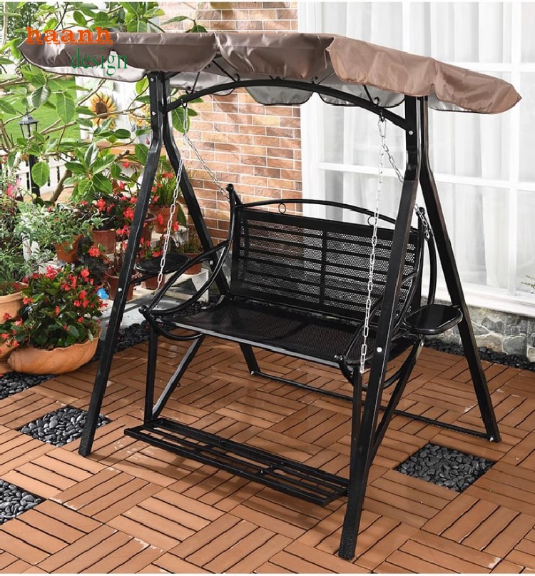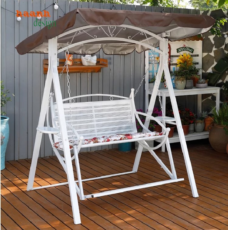Một số mẫu xích đu còn được trang bị mái che, giúp bảo vệ khỏi ánh nắng mặt trời và mưa. Đây là lựa chọn hoàn hảo cho những ngày hè oi ả hay những buổi chiều mưa bất chợt.