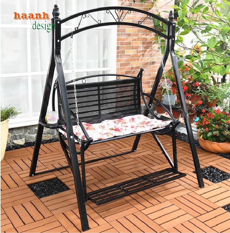 Một trong những điểm mạnh của xích đu sắt sân vườn là chất liệu bền bỉ. Sắt được xử lý chống gỉ và sơn tĩnh điện giúp chiếc xích đu có thể chịu được mọi điều kiện thời tiết. Bạn không cần lo lắng khi trời mưa hay nắng gắt. Điều này không chỉ giúp kéo dài tuổi thọ của sản phẩm mà còn giảm thiểu chi phí bảo trì.