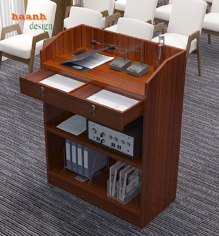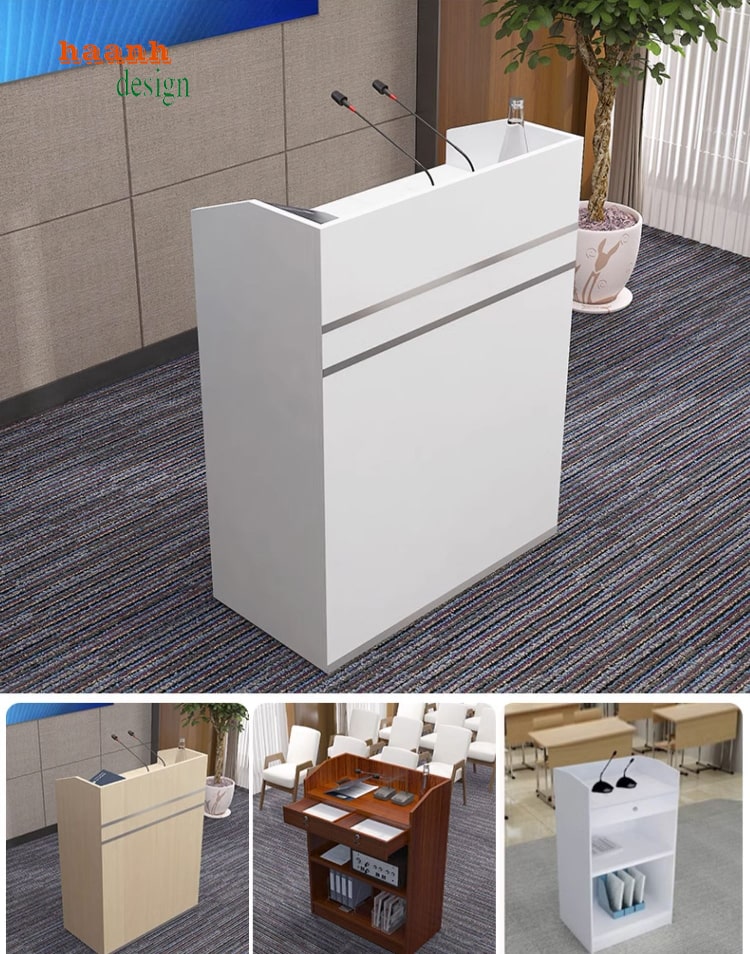 bục phát biểu hội trường là một phần không thể thiếu trong các sự kiện, buổi họp hay hội nghị. Nó không chỉ đơn thuần là nơi để người nói đứng mà còn là yếu tố tạo nên không khí trang trọng và nghiêm túc cho mọi hoạt động diễn ra. Những chiếc bục phát biểu hội trường được thiết kế đa dạng về kiểu dáng và chất liệu, mang đến cho người sử dụng những trải nghiệm khác nhau khi bước lên thuyết trình.