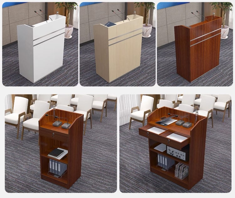 Ngoài ra, việc áp dụng màu sắc và kiểu dáng hiện đại cũng giúp các bục phát biểu gỗ đẹp trở nên nổi bật hơn trong không gian hội trường. Những màu sắc tươi sáng, kết hợp với họa tiết đơn giản nhưng tinh tế, sẽ tạo nên một không gian trẻ trung và năng động.