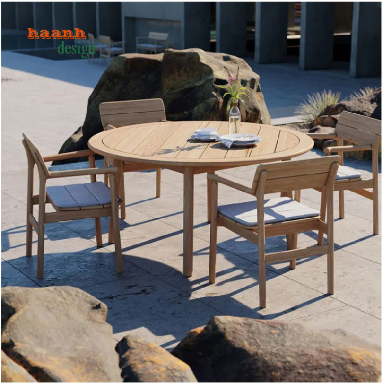 Bàn ghế gỗ teak ngoài trời là một trong những sự lựa chọn hàng đầu cho những ai yêu thích sự sang trọng và bền bỉ. Gỗ teak nổi tiếng với khả năng chống thấm nước, chống mục nát và đặc biệt là khả năng duy trì màu sắc tốt qua thời gian.