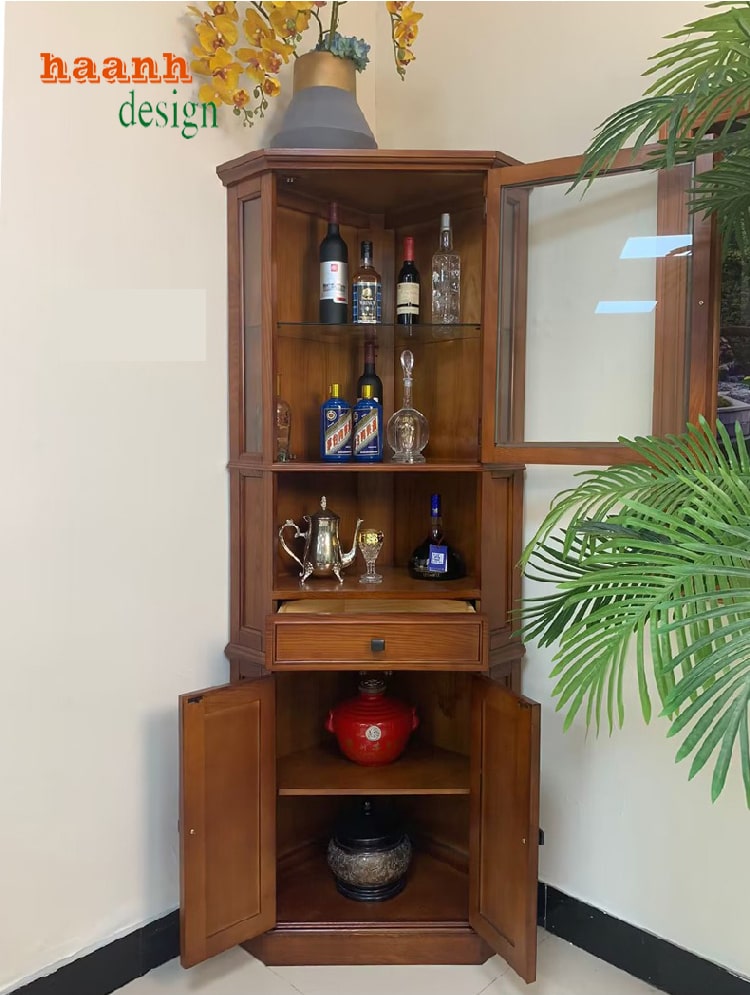 Thiết kế góc giúp tiết kiệm không gian, đặc biệt phù hợp cho những căn phòng có diện tích hạn chế. Bạn có thể đặt tủ ở những vị trí như phòng khách, phòng ăn hoặc thậm chí là văn phòng làm việc.