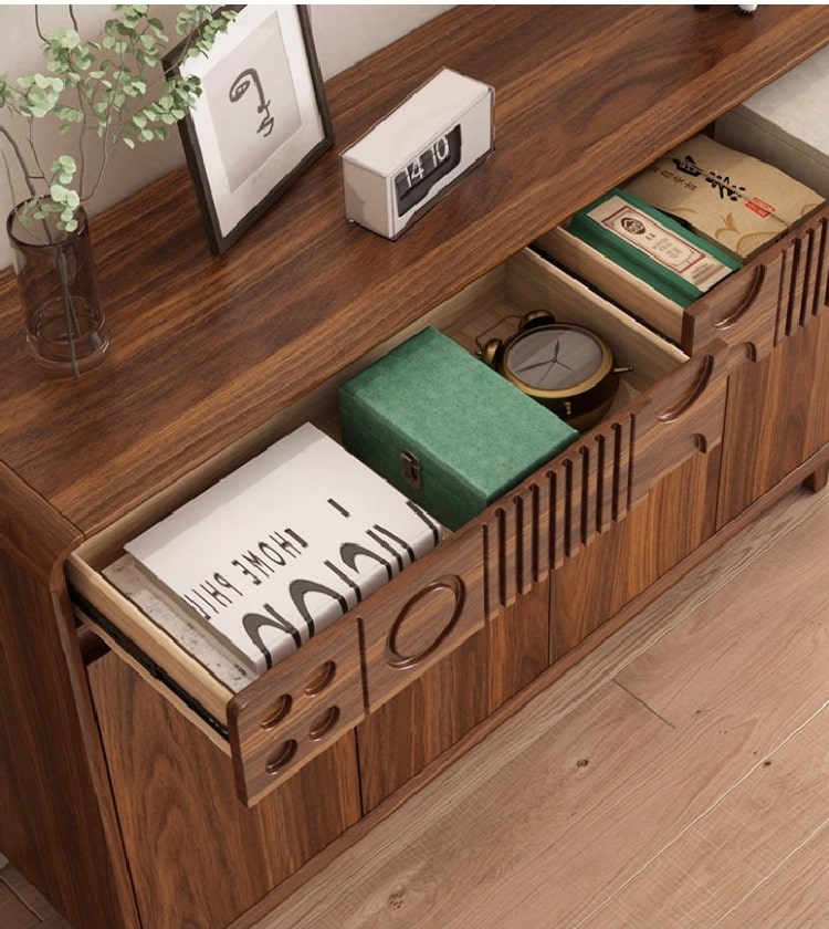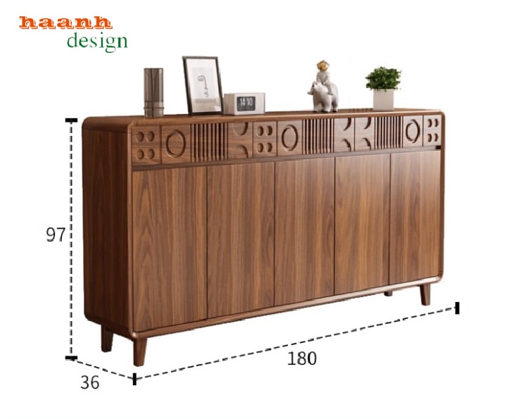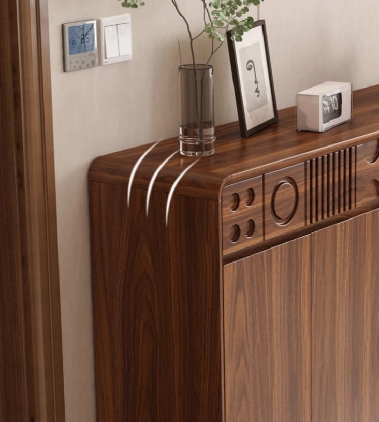 Sản phẩm tủ để giày dép bằng gỗ được chế tác từ gỗ công nghiệp Flywood phủ veneer óc chó cao cấp, kết hợp cùng gỗ óc chó tự nhiên. Sự kết hợp này mang đến: