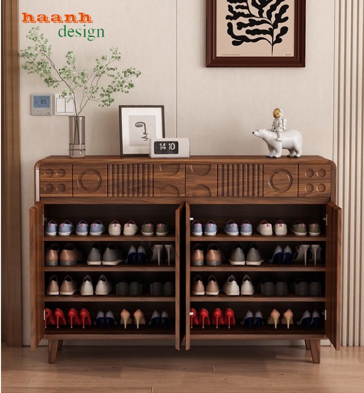 Trong đời sống hiện đại, việc sắp xếp giày dép gọn gàng không chỉ mang lại sự ngăn nắp mà còn thể hiện phong cách của gia chủ. Một tủ để giày dép bằng gỗ không chỉ đơn thuần là nơi cất giữ mà còn là điểm nhấn nội thất, góp phần tạo nên sự sang trọng cho căn nhà.