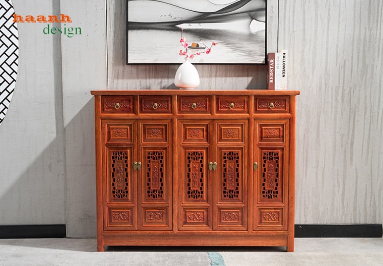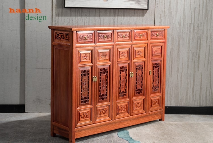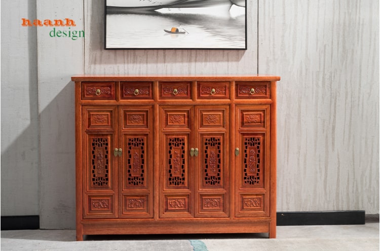 Thiết kế hoa văn đục chạm trên tủ giầy dép gỗ tự nhiên giả cổ là một trong những yếu tố quan trọng tạo nên vẻ đẹp độc đáo và sang trọng cho sản phẩm. Để có được thiết kế hoa văn đục chạm tốt trên tủ giầy dép gỗ tự nhiên giả cổ, bạn có thể tham khảo một số ý tưởng sau đây: