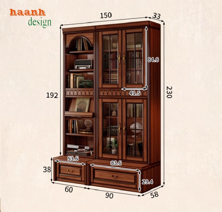Tủ kệ sách gỗ tự nhiên tân cổ điển sang trọng