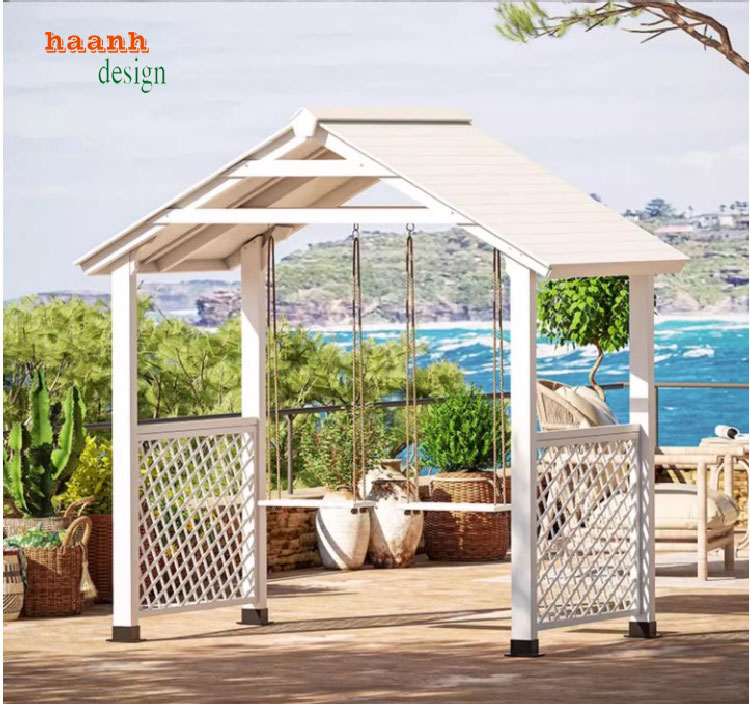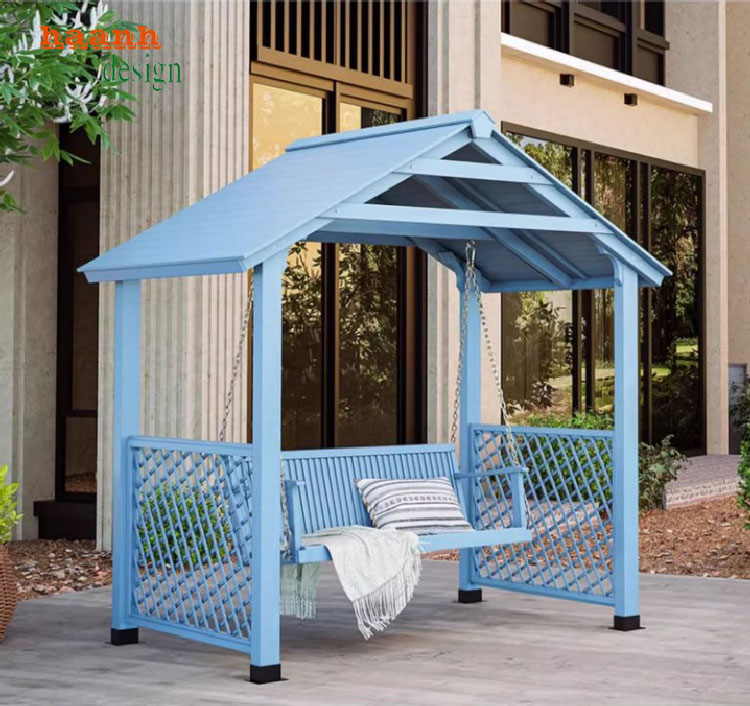 Bạn có thể bố trí xích đu ở góc nhỏ của sân vườn hoặc ban công, kết hợp với cây xanh để tạo nên không gian thư giãn lý tưởng.
